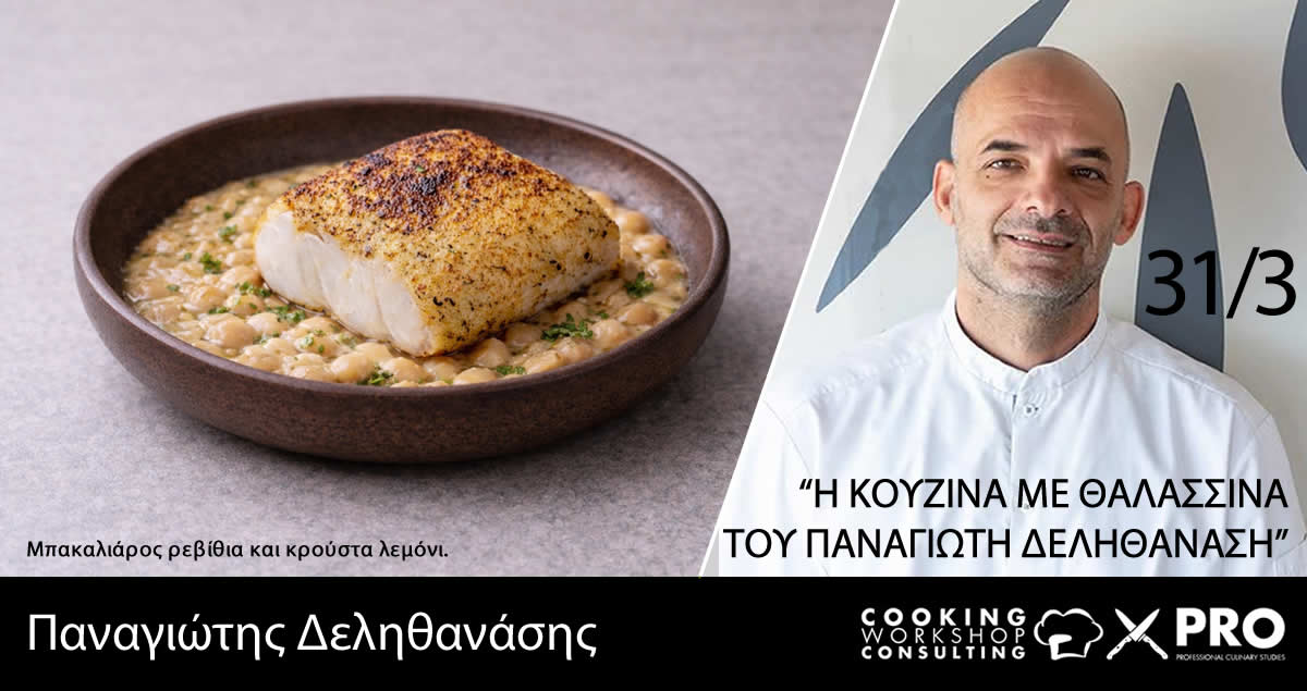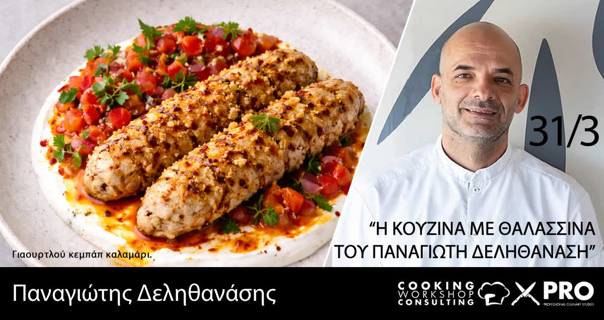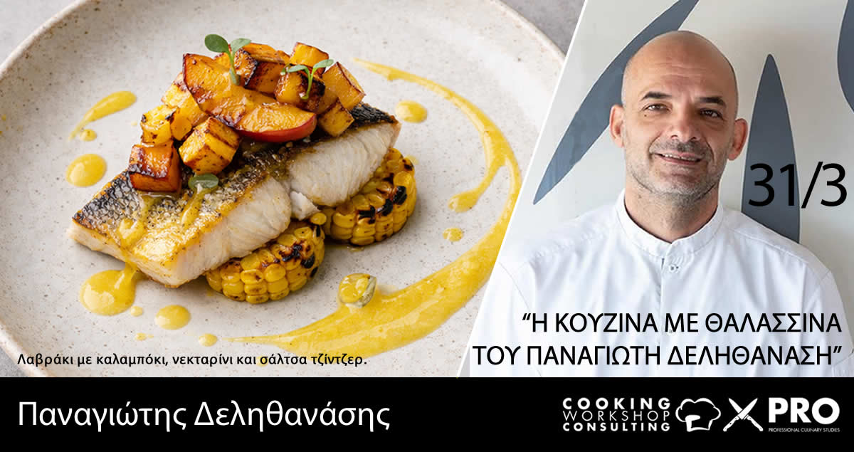 Στο Masterclass «Η Κουζίνα με Θαλασσινά του Παναγιώτη Δεληθανάση», ο chef θα παρουσιάσει ένα ολοκληρωμένο μενού δημιουργικής κουζίνας, βασισμένο στο δυναμικό του στυλ, που χαρακτηρίζεται από ευρηματικούς συνδυασμούς, άρτια τεχνική και επιλεγμένες πρώτες ύλες υψηλής ποιότητας.